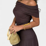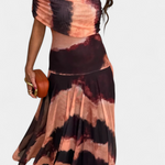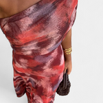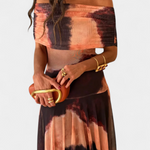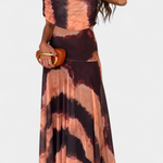 Изкуствена силует, който съчетава модерност и женственост. Рената се отличава с деколте с едно рамо, което с изящество обрамчва ключицата, а също така идва с летяща макси пола, която носи елегантно движение. Нейният тай-драй десен в топли и нежни тонове създава хипнотичен ефект, пълен с характер.