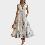 Роклята с цветен десен внася дъх на свежест и нежност в тържествени моменти. Тя е проектирана за специални поводи, когато искате да изглеждате изискани и женствени.