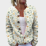 Този кардиган комбинира деликатността на цветния модел с удобството на плетената дреха. Лек и пълен с чар, той е перфектен за добавяне на весело и романтично докосване към всяка комбинация, било то в ежедневието или в специални моменти.