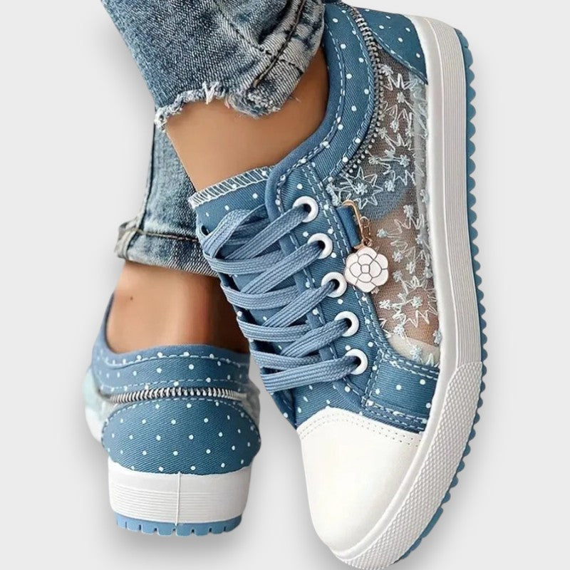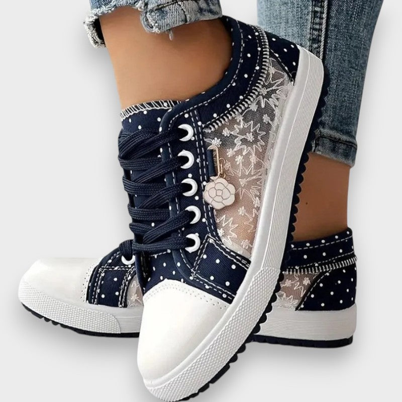 Тези чевли са перфектната комбинация от неформален стил и женственост. С детайли от прозрачна дантела и дискретни украшения, те трансформират всеки основен вид в чаровна и оригинална комбинация. Идеални са за тези, които търсят лекота, стил и комфорт в един и същи чифт. Истинско удоволствие за краката!
