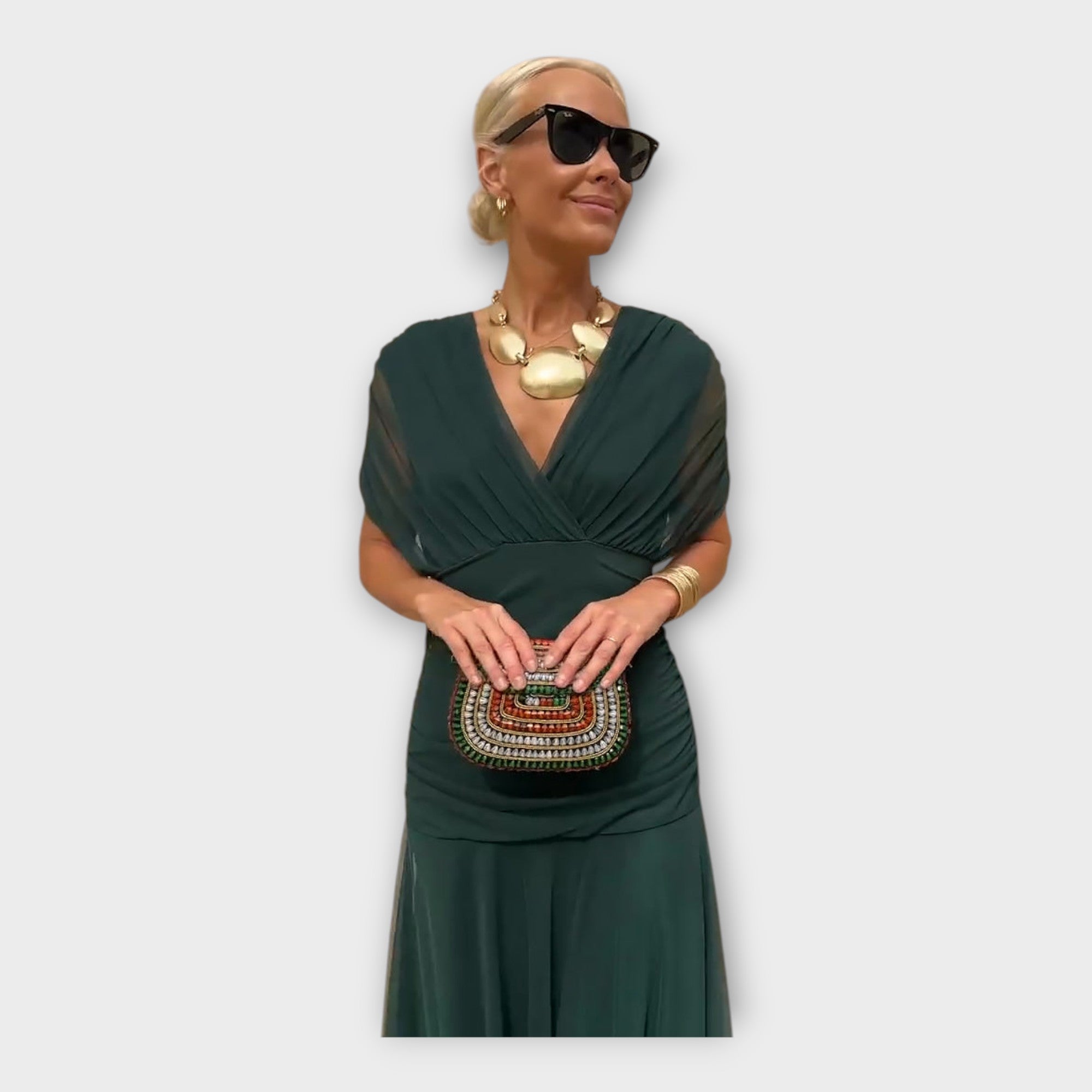Рокля, която комбинира елегантност и вечна финес, предоставяйки перфектния завършек на всяка визия. Гъвкавият дизайн я прави идеална за всички поводи, от неформални издания до по-елегантни вечерни излизания. С удобен крой и минималистична естетика, представлява основен елемент от всеки гардероб.