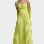 Подчертайте своя блясък и женственост с тази очарователна макси рокля в интензивно жълт цвят. Нейната плисирана текстура и без презрамки дизайн хармонично обгръщат вашата силует, предоставяйки усещане за елегантност и ненатрапчива луксозност при всяко ваше появяване.