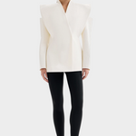 Издигнете своя динамичен стил с Бялото Сако с Изразителни Рамена – архитектурен елемент, който се отличава с минималистичен дизайн и импозантна линия. Идеално за визии, които съчетават елегантност и съвременна естетика.