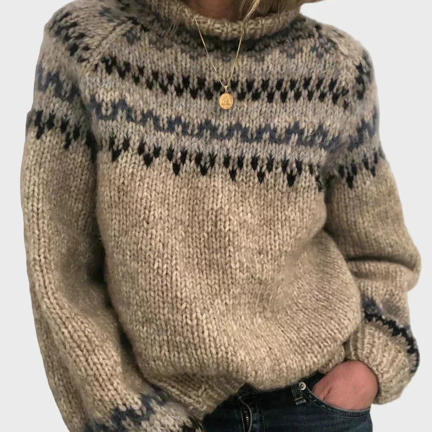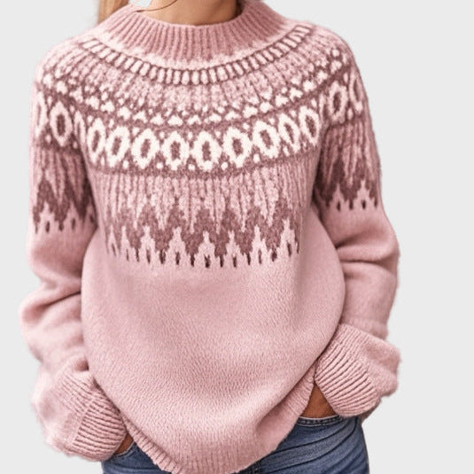 Плетен Д jumper с Винтидж Жакардов Узор