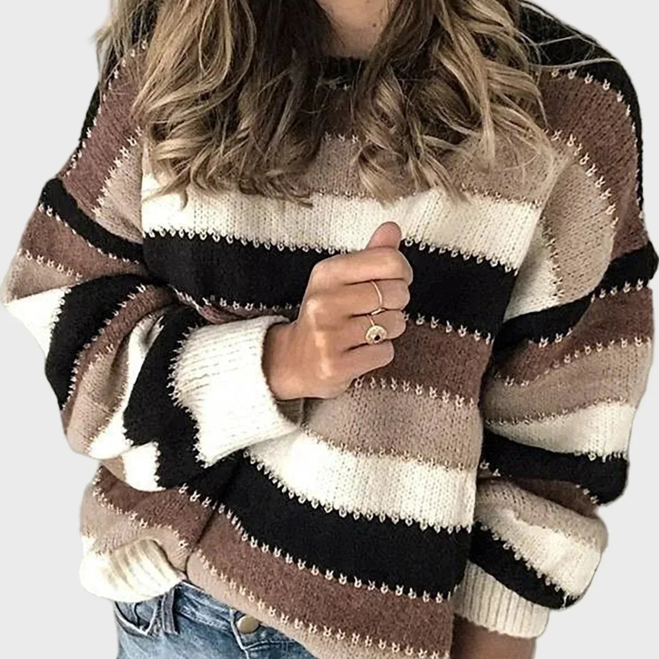Плетен Дамски Пуловер с Кръгло Деколте