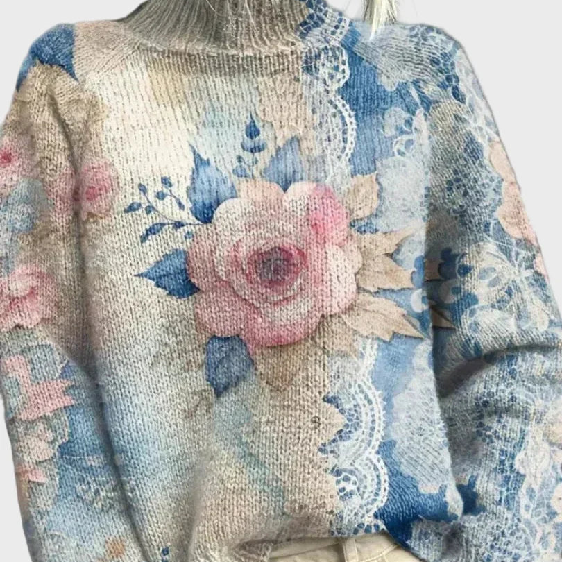 Плетен Пуловер с Елегантен Цветен Узор