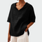 Зелената ленена тениска е стилен и елегантен артикул, който съчетава простота с комфорт. С разкроен силует и дискретно V-образно деколте, предлага модерен стил, който може да се носи всеки ден или при специални поводи.