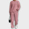 Този спортен комплект е идеален за тези, които търсят градски вид с удобен допир. С дълъг ръкав и прави панталони, комбинира практичност и стил в едно предложение. Субтилните детайли и безупречната изработка правят парчето идеално за ежедневието, независимо дали излизате, пътувате или просто се отпускате с личността си.