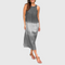 Тази макси рокля предлага перфектна комбинация от простота и модерен стил. Без ръкави и с прав силует, тя осигурява лекота и комфорт, докато ефектът на нюанси създава визуално интересен и изискан вид. Идеална за летни дни, разходки край морето или неформални градски комбинации – рокля, която се носи с лекота и елегантност.