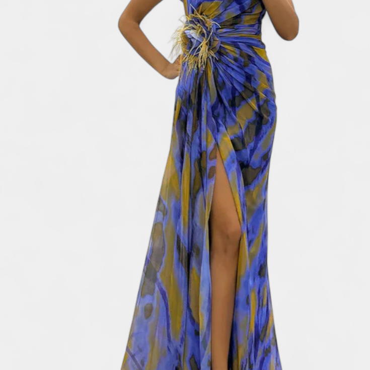 Бланка Макси Асиметрична Рокля с Вибрантен Узор
