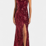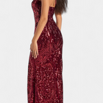 Очарователна силует, който излъчва магнетизъм и изтънченост. Марияна се отличава с халтер дизайн, който подчертава фигурата и блестящ завършек от пайети, който улавя всеки отблясък на светлината. Нейният ласкателен крой прави роклята перфектен избор за да бъдете в центъра на вниманието.