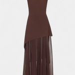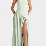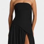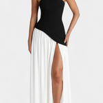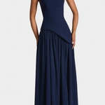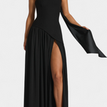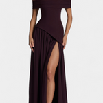 Софистицирана и пълна с движение, роклята Райна комбинира структуриран топ с ефирната лекота на шифона. Нейният off shoulder деколте подчертава женствеността с изискано докосване, докато дългата пола с боков разрез внася динамика и съблазнителност. Проектирана да се откроява на елегантни поводи, това е парче, което естествено балансира модерността и вечността.