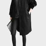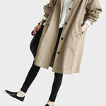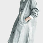 Този тренчкот съчетава стил и удобство, създавайки модерен и елегантен външен вид. С дълга линия и свободен силует, той е идеален за носене върху различни облекла, осигурявайки комфорт и защита през прохладните дни.