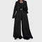 Този комплект преосмисля понятието за съвременна елегантност. С панталон с широка кройка и подчертана талия, той подчертава силуета, като едновременно осигурява комфорт и свобода на движение. Структурираният топ и сакото с минималистични линии създават изискан външен вид — идеален за онези, които искат да излъчват увереност и стил при всеки повод. Универсален избор, който лесно преминава от делова визия към социално събитие.