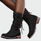 Дамски кожени ботуши в сив нюанс с винтидж естетика и ръчно изработен характер. Имат връзки за удобно прилягане, метални детайли в горната част и нисък дървен ток, който осигурява комфорт през целия ден. Леко износеният дизайн им придава уникален стил, който изпъква в всяка casual или бохо комбинация.